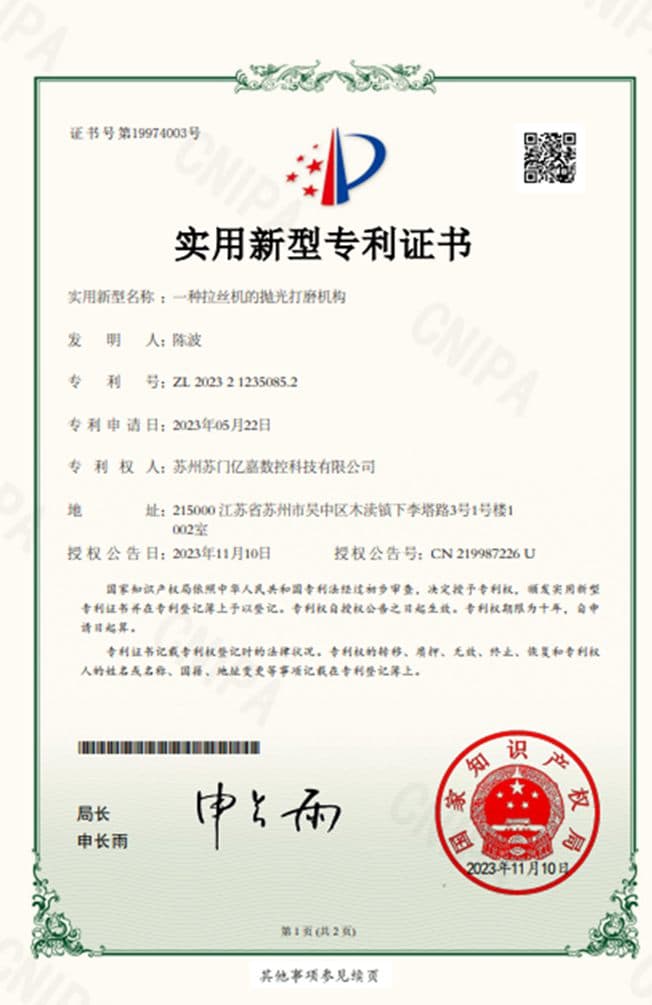 自创立以来,苏门亿嘉深耕金属表面处理领域,凭借多年积累的行业经验与技术沉淀,成功布局涵盖表面处理、金属倒角、平面拉丝机等多中金属表面加工场景。公司拥有完全自主知识产权,技术水平位居行业前列。目前,品牌销售网络已覆盖美国、欧洲、俄罗斯、越南等主要区域,凭借卓越的产品品质与服务,在全球市场树立了良好的品牌形象与信誉。